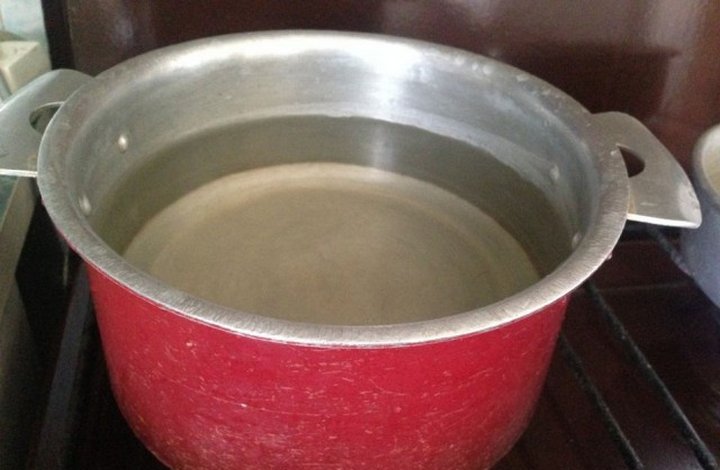 Добавляем немного воды, что бы легче было размешивать и отдирать ото дна наш концентрат. Процесса заливки фруктозы не снял — кастрюля горячая))