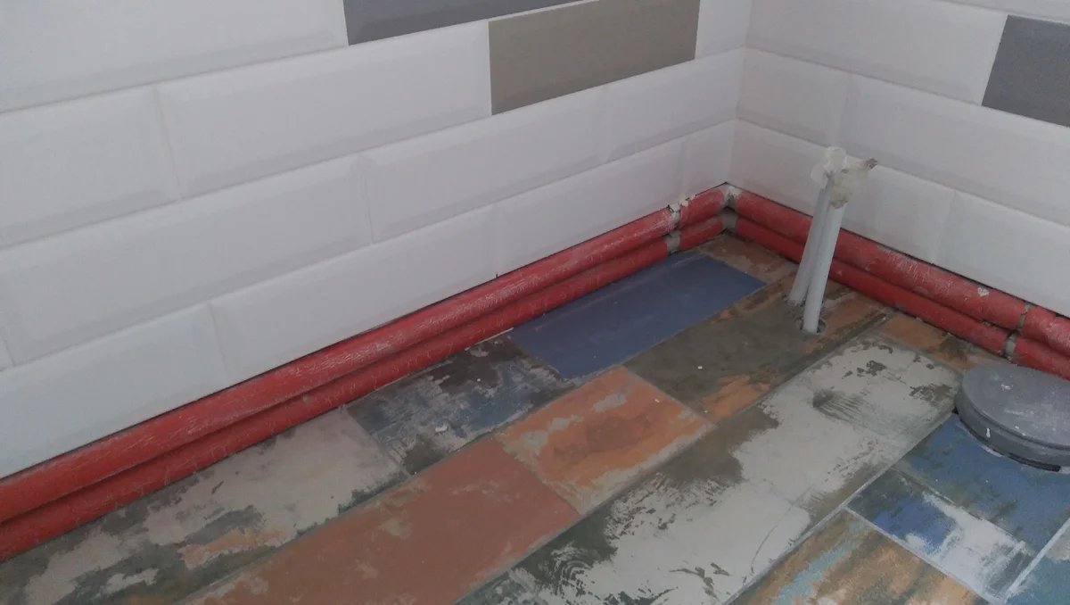 В итоге, вместо 27 кв.м. плитки, мы купили и положили лишь 13, уменьшив затраты вдвое. А во-вторых, я бросил эту затею с ГКЛ-коробом и поставил плинтус, о чем вообще не жалею.