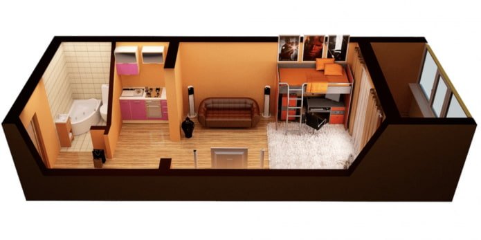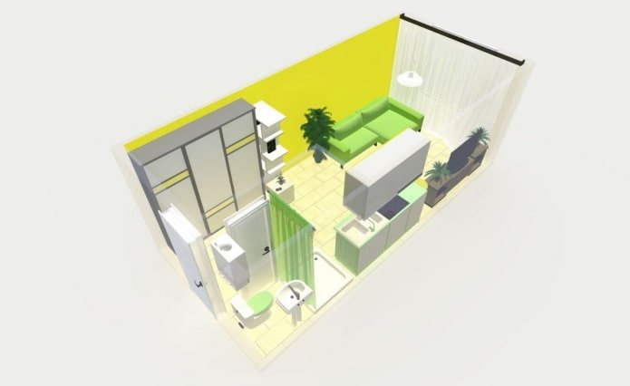 Квартиры гостиничного типа площадью от 12 до 18 кв.м. включают в себя два помещения – жилую комнату и санузел. Крошечная кухня обычно располагается в коридоре. В гостинке есть только одно окно, а для сравнительно комфортной жизни требуется компактная мебель. Подходит для человека, живущего в одиночестве.