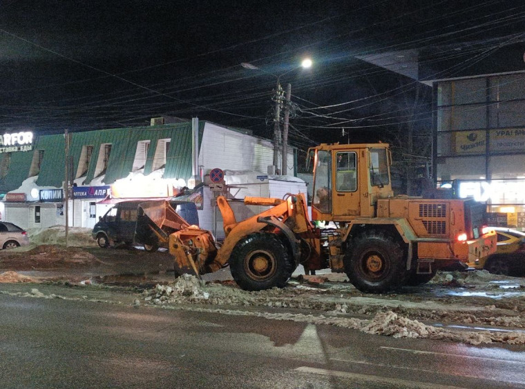 В планах на день — очистка проезжих частей, пешеходных зон и парковочных карманов, а также вывоз собранной снежной массы.