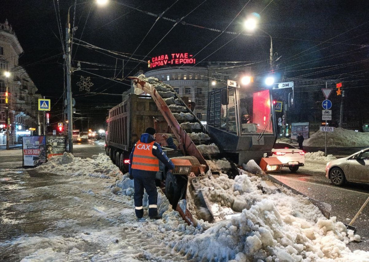 Вывоз снежных куч производили с улиц Рязанской, Максима Горького, Кирова, 9 Мая и Одоевского шоссе.