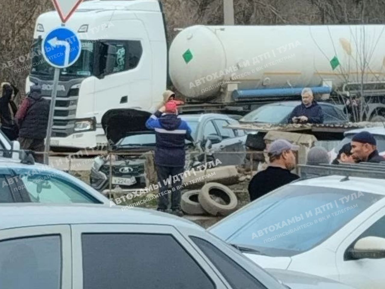 На улице Рязанской в Туле столкнулся бензовоз и иномарка
