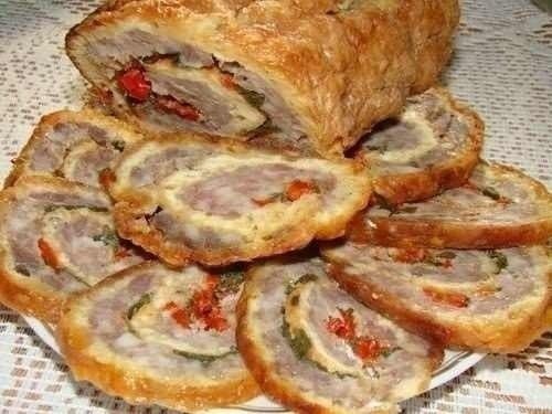 Рулет из сыра с мясным фаршем