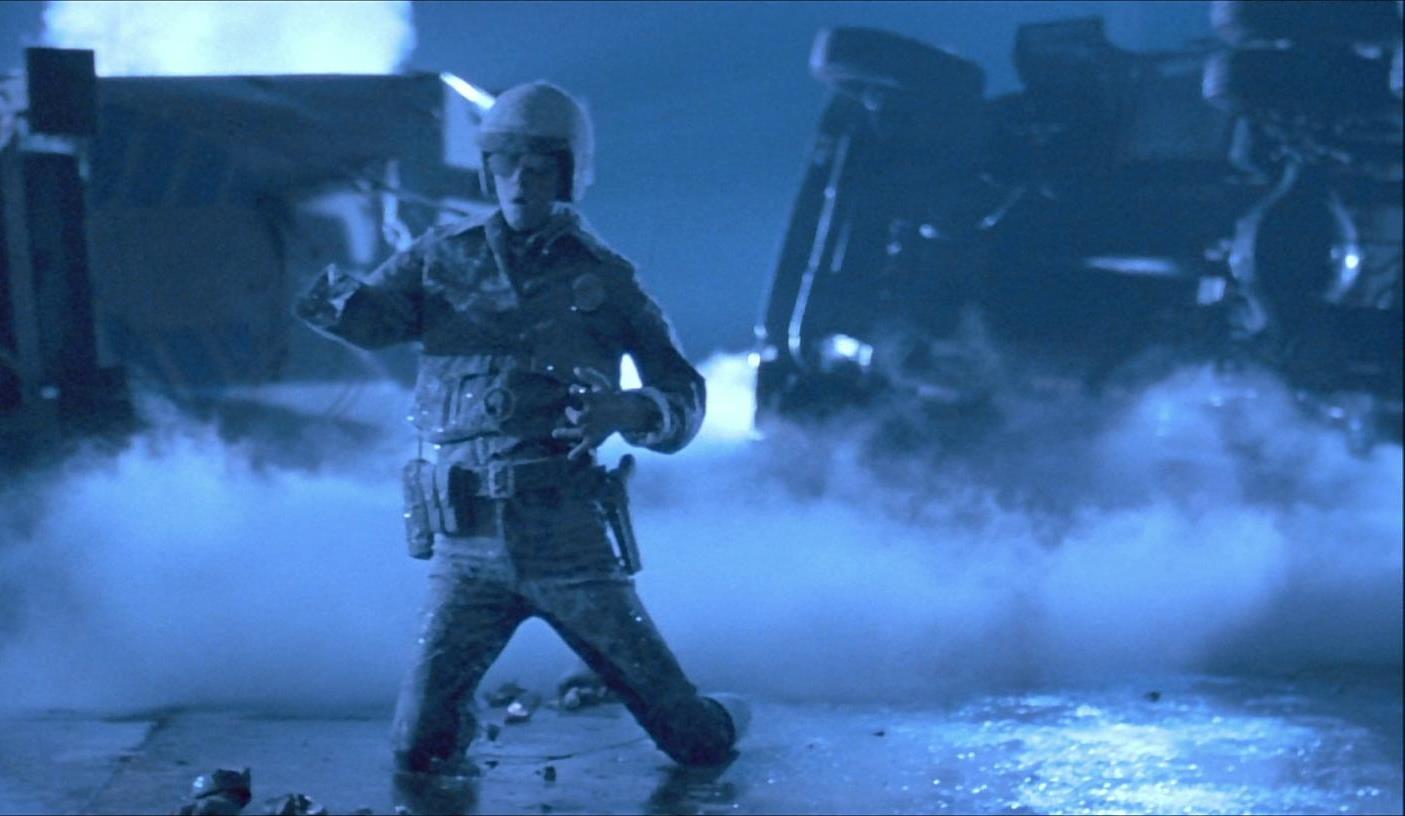 2. В «Терминаторе 2» широко использовался труд актеров-близнецов. В прокатной версии фильма мы видели два таких момента: охранник психиатрической лечебницы видит Т1000, перевоплотившегося в охранника психиатрической лечебницы. Это близнецы Дон Стэнтон и Дан Стэнтон. А во втором моменте Сара Коннор пытается завалить Т1000, превратившегося в нее саму. У Линды Хэмилтон есть сестра-близнец, Лесли Хэмилтон, и эту сцену они тоже отыграли вместе.