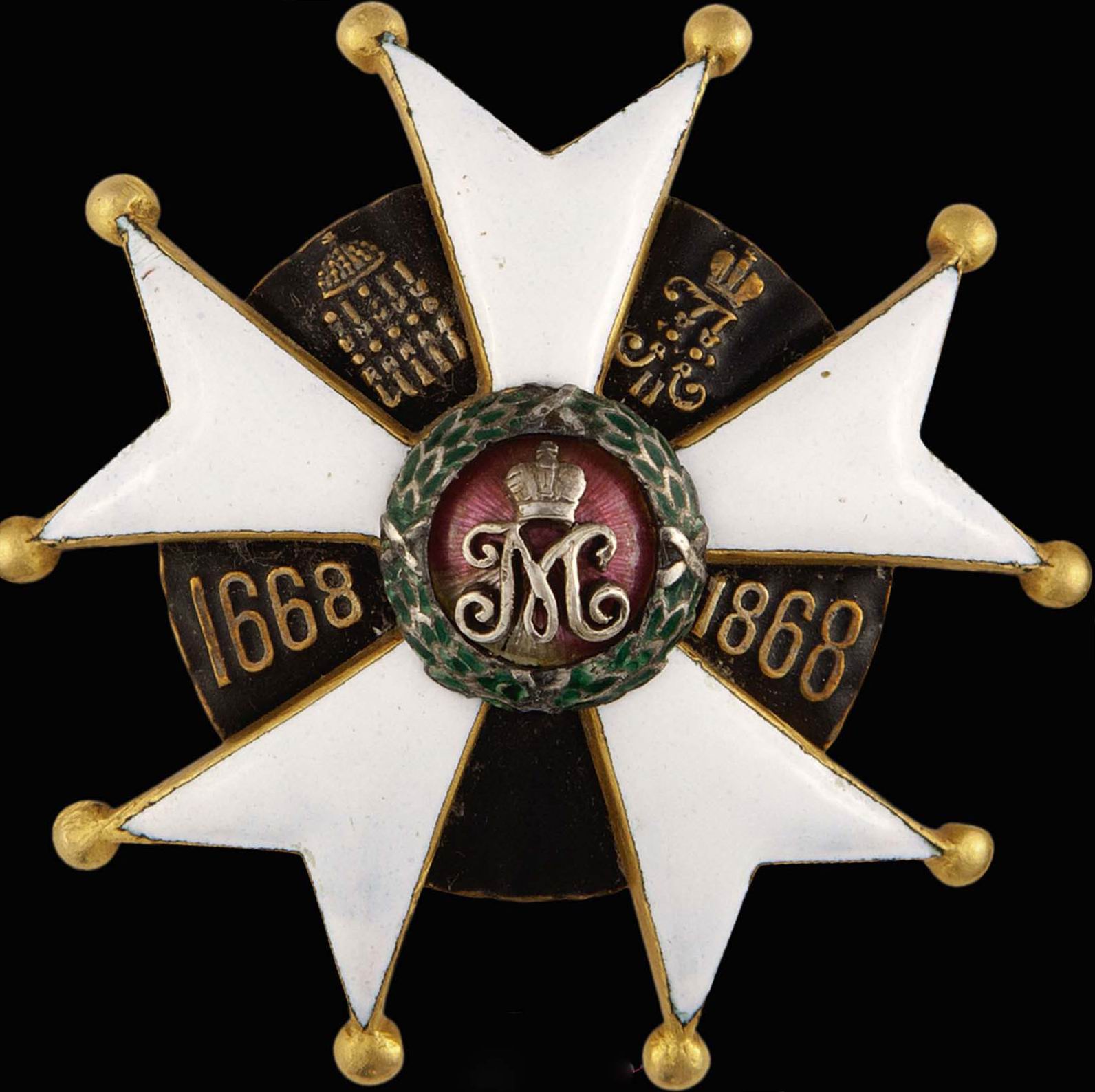 Тако же на полковых знаках в центральном медальоне был вензель "М" под короной.