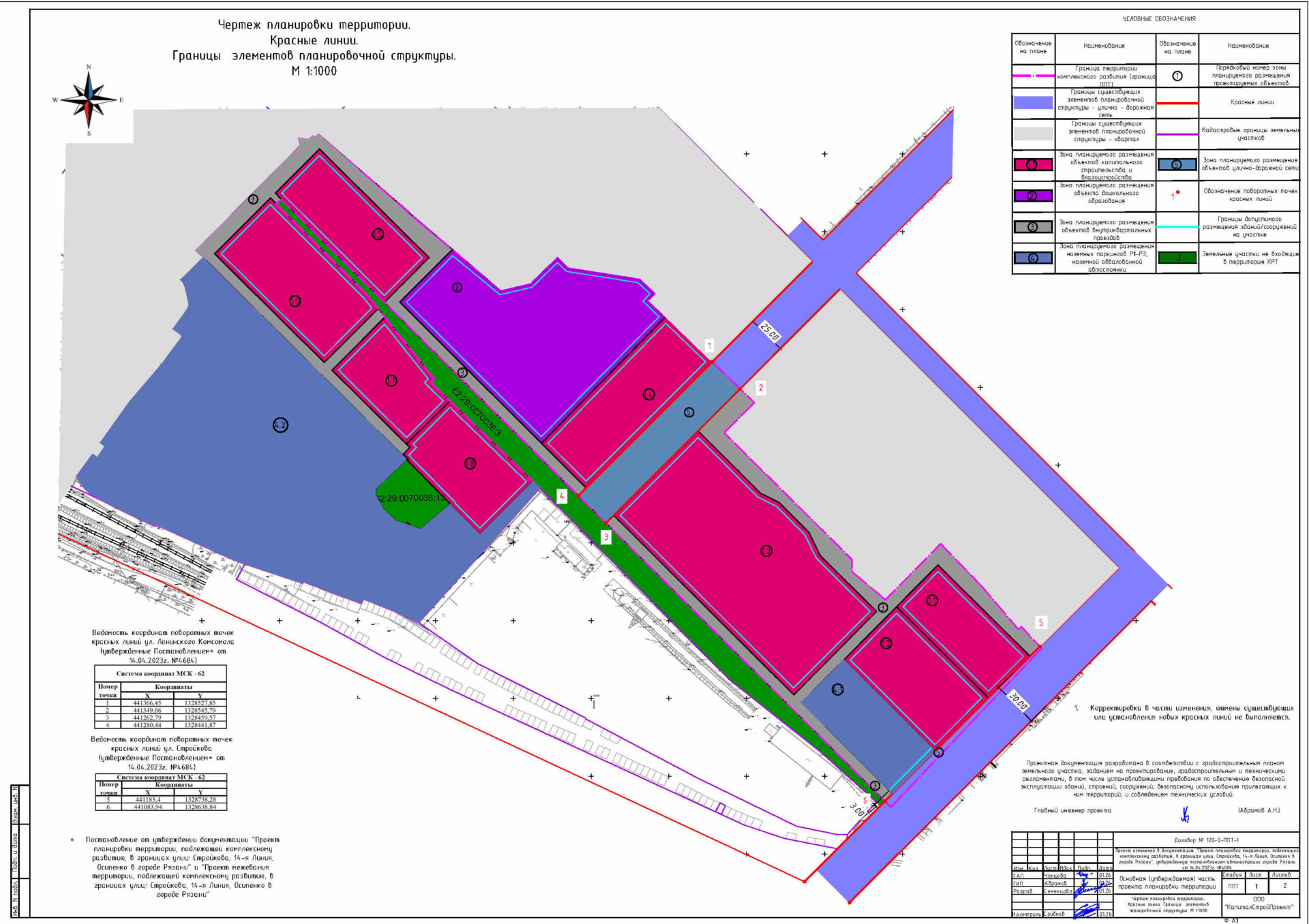 В соответствии со статьями 42, 45 Градостроительного кодекса Российской Федерации, статьей 12 Правил землепользования и застройки в городе Рязани, утвержденных решением Рязанской городской Думы от 11.12.2008 № 897-I, заключением от 13.03.2026 № 02-05-42-Исх о соответствии документации «Проект изменений в документацию «Проект планировки территории, подлежащей комплексному развитию, в границах улиц: Стройкова, 14-я Линия, Осипенко в городе Рязани», утвержденную постановлением администрации города Рязани от 14.04.2023 № 4684» требованиям градостроительного законодательства, подготовленным администрацией города Рязани, руководствуясь статьями 39, 41 Устава муниципального образования – городской округ город Рязань, постановлением администрации города Рязани от 12.12.2025 № 12189 «О делегировании отдельных полномочий главы администрации города Рязани первому заместителю главы администрации Лощинину Д.Н.», администрация города Рязани п о с т а н о в л я е т: