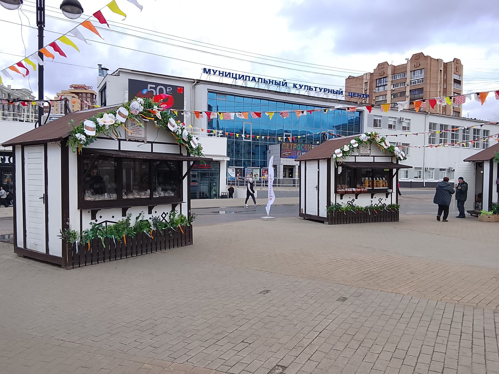 Тематическая ярмарка, уже третья в текущем году, раскинулась на площадке перед Муниципальным культурным центром. Ярмарка приурочена к к празднику Светлой Пасхи.