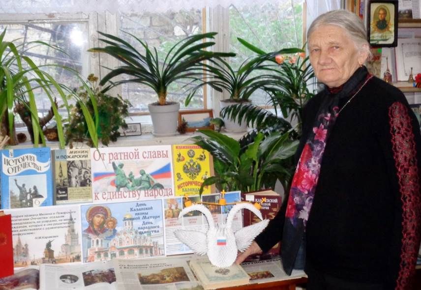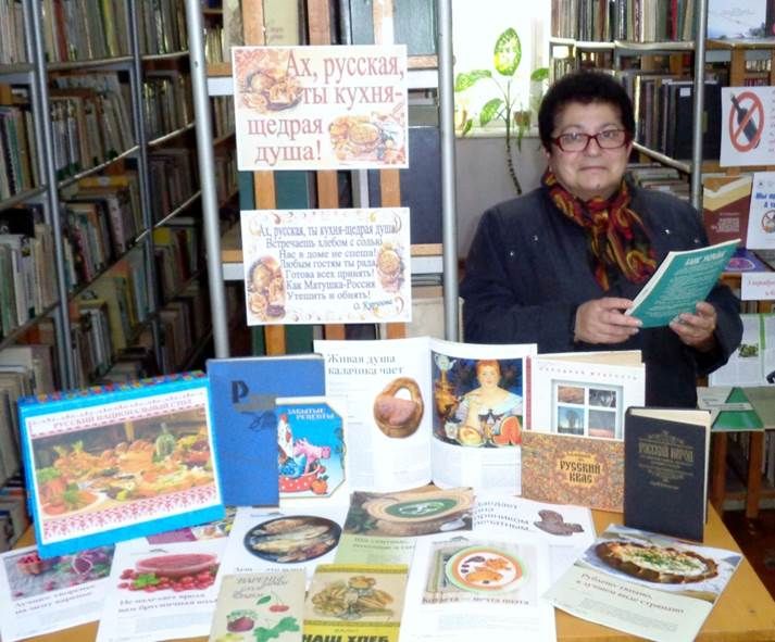 Выставка славного прошлого «От ратной славы к единству народа» информационно дополнила рассказ библиотекарей. Ее украшением стал двуглавый орёл – символ России (творческая работа волонтера, читателя библиотеки Алины Танюхиной, выполненная в технике модульного оригами). Отдельный интерес у гостей мероприятия, особенно женщин, вызвали материалы выставки кулинарной мудрости «Ах, русская, ты кухня, щедрая душа!».
