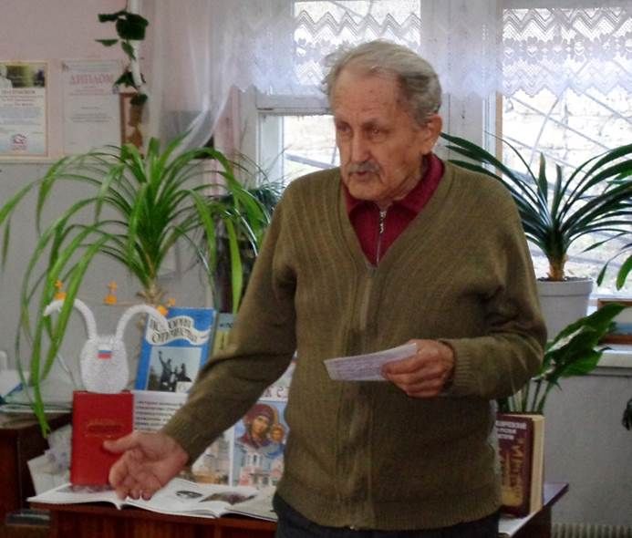 В заключение мероприятия активный читатель библиотеки, автор творческой выставки «Пусть лицо твое радостью светит» Борис Чепраков прочитал свое посвящение малой родине «Село детства моего» и подарил присутствующим рукописные стихотворения.