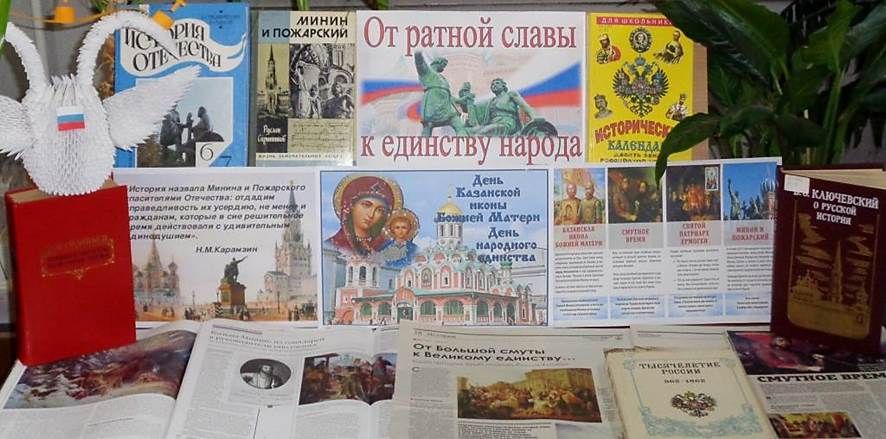 Библиотекари подготовили для присутствующих литературно-музыкальную программу, познакомили с историей Дня народного единства. Праздник, объединивший все народы России, был учрежден в декабре 2004 года. Но история его становления начинается более четырех веков назад, когда в начале ноября 1612 года, народное ополчение во главе с купцом Мининым и воеводой Пожарским со списком чудотворной иконы Казанской Божией Матери, явленной в 1579 году в Казани, изгнало польских захватчиков из Москвы и положило начало конца Смутному времени.