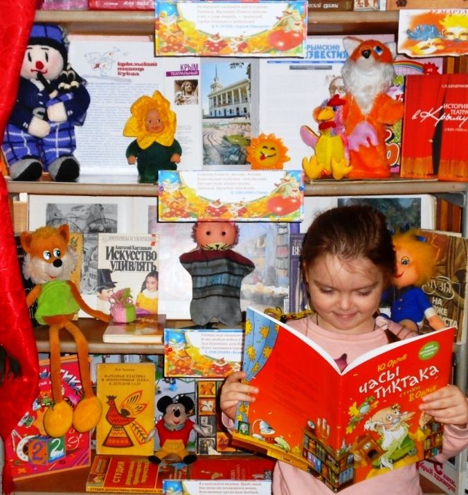 Издания, представленные на выставке, не только знакомят юных читателей, их родителей, бабушек и дедушек с историей зарождения русского театра, но и рассказывают о первых актёрах-кукольниках и их весёлых подопечных, советуют, как научиться самому мастерить кукол. Рядом с красочными книгами и журналами уютно разместились любимые с детства куклы, в том числе, представляющие «актеров» пьес В. Орлова (Лиса и Золотой цыпленок, Тимка), герои авторских и русских народных сказок.