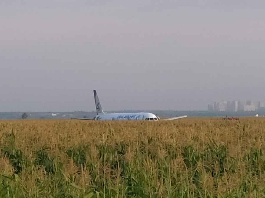 Из-за загоревшегося двигателя пилот посадил в поле самолет, летевший из Москвы в Симферополь