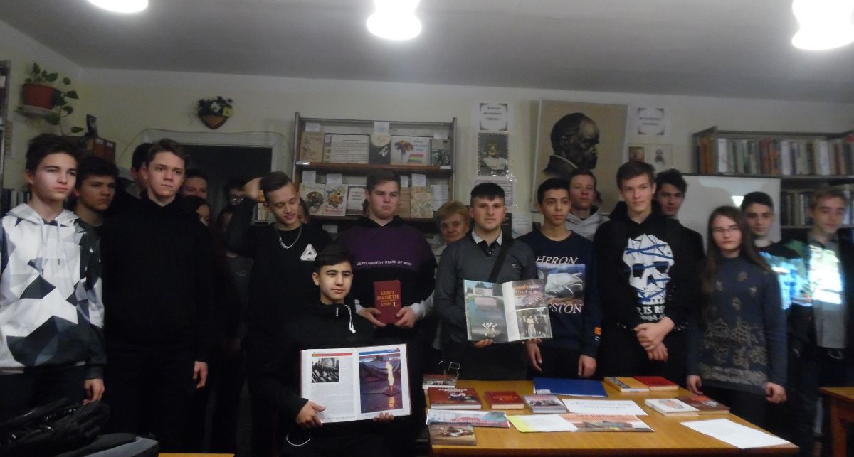 Библиотекарь Ирина Лукашевич рассказала о книгах, запечатлевших на своих страницах имена павших, живых, пропавших без вести в годы сражений на фронтах Отечественной войны наших земляках – крымчанах. Представленная «Книга Памяти города Симферополя и Симферопольского района» вызвали живой интерес у присутствующих молодых людей.