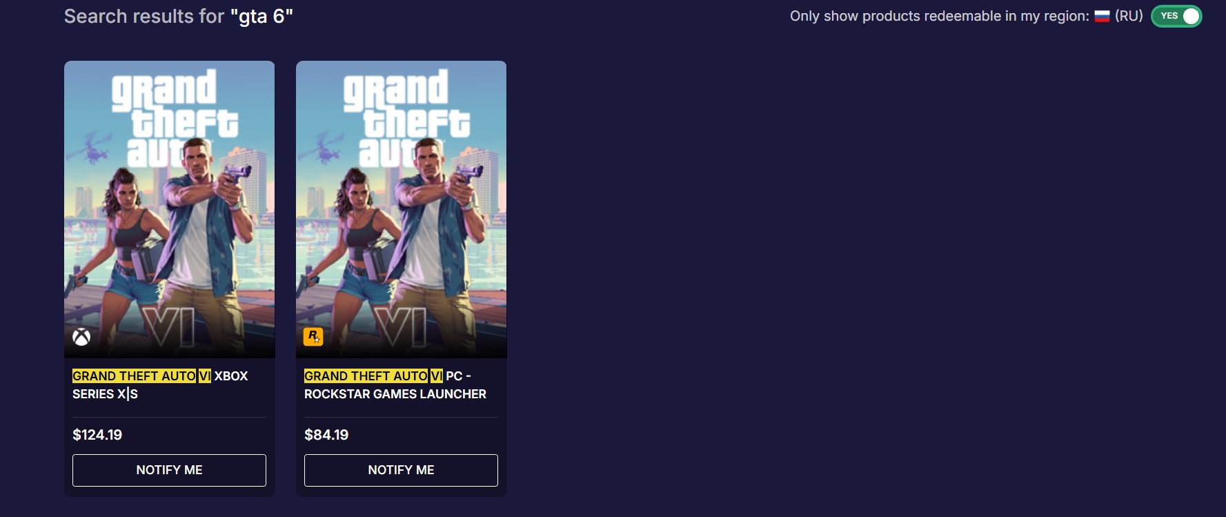 Масштабная рекламная кампания Grand Theft Auto VI начнётся только летом, поэтому и о предзаказах говорить ещё рано. Но на сайте цифрового магазина Loaded (в прошлом — CDKeys) нашли два листинга игры.