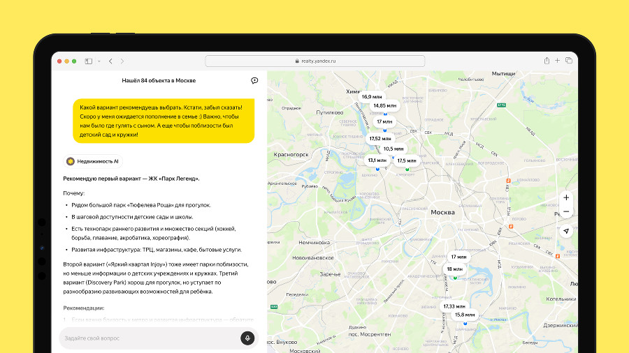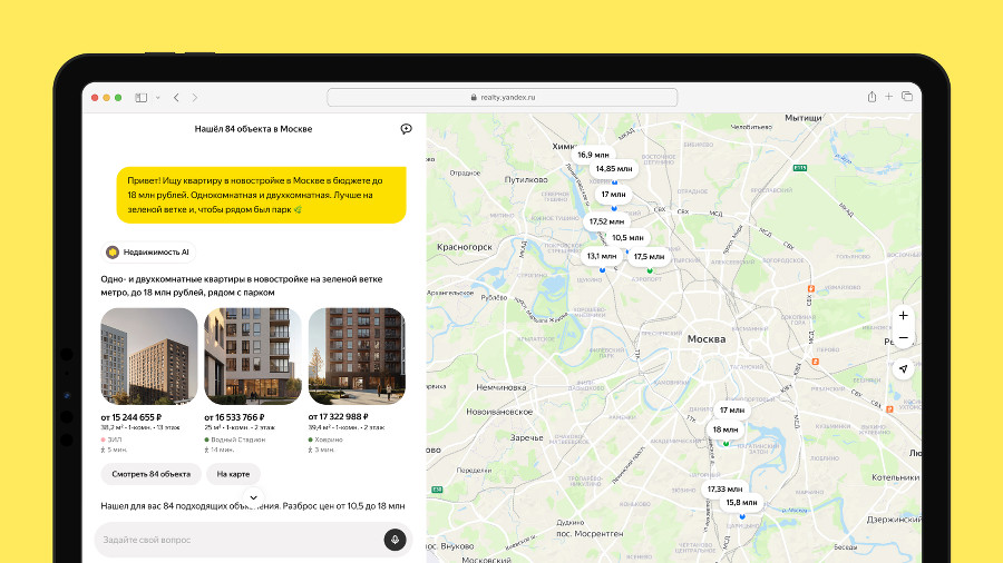 Яндекс Недвижимость запустила ИИ-помощника для поиска и сравнения недвижимости
