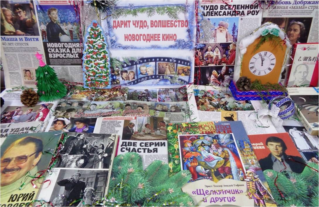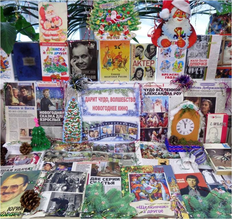 Информационным сопровождением мероприятия стала выставка-инсталляция «Дарит чудо, волшебство новогоднее кино», украшением которой стала праздничная елка в окружении литературных первоисточников любимых фильмов новогодней тематики.