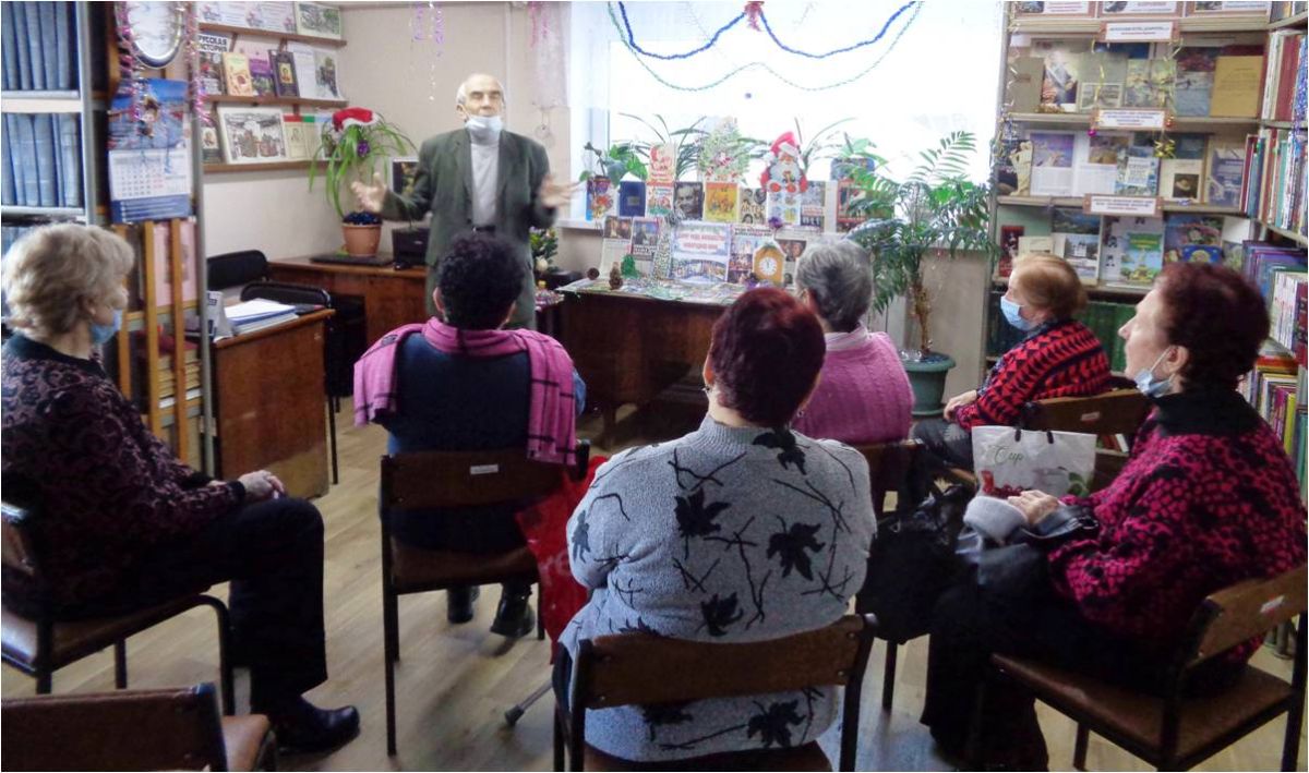 Приятным подарком присутствующим стало выступление верного друга библиотеки, крымского писателя Игоря Николаевича Клоссовского, подарившего милым дамам авторское поэтическое поздравление с Новым годом.