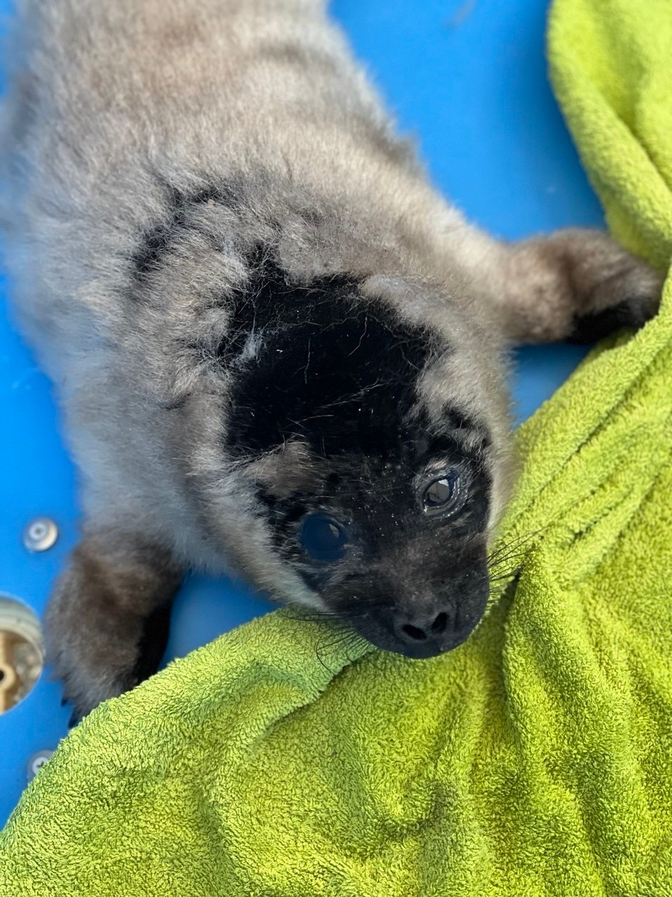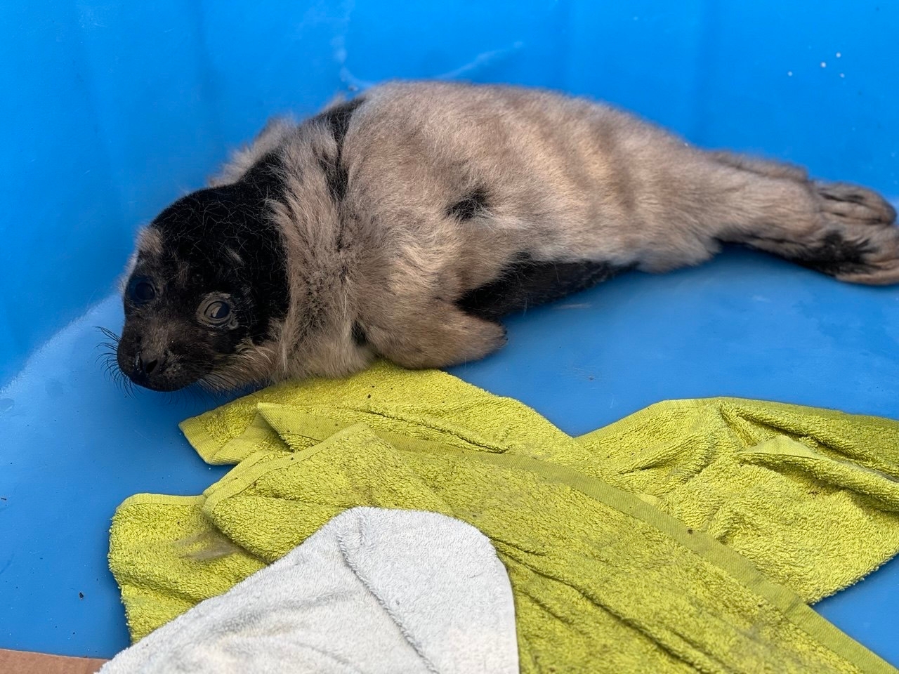 Маленькая нерпа слаба и с опасением относится к своим спасителям.