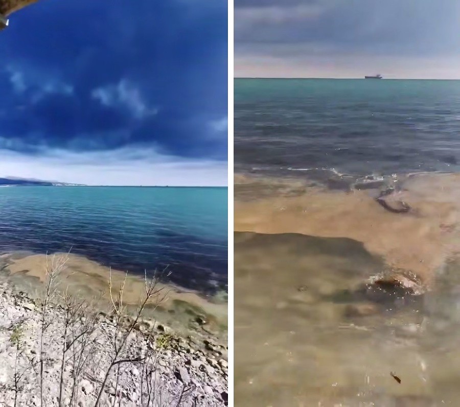 На пляже Туапсе нашли пятна, похожие на мазут. Жители утверждают, что они появились из-за пожара в порту