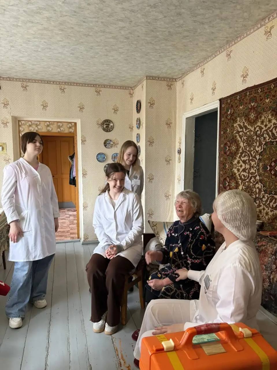 Вместе с профильными специалистами в села и деревни приезжают и студенты-медики. Они ассистируют профессионалам, а также помогают облагораживать территорию ФАПов.