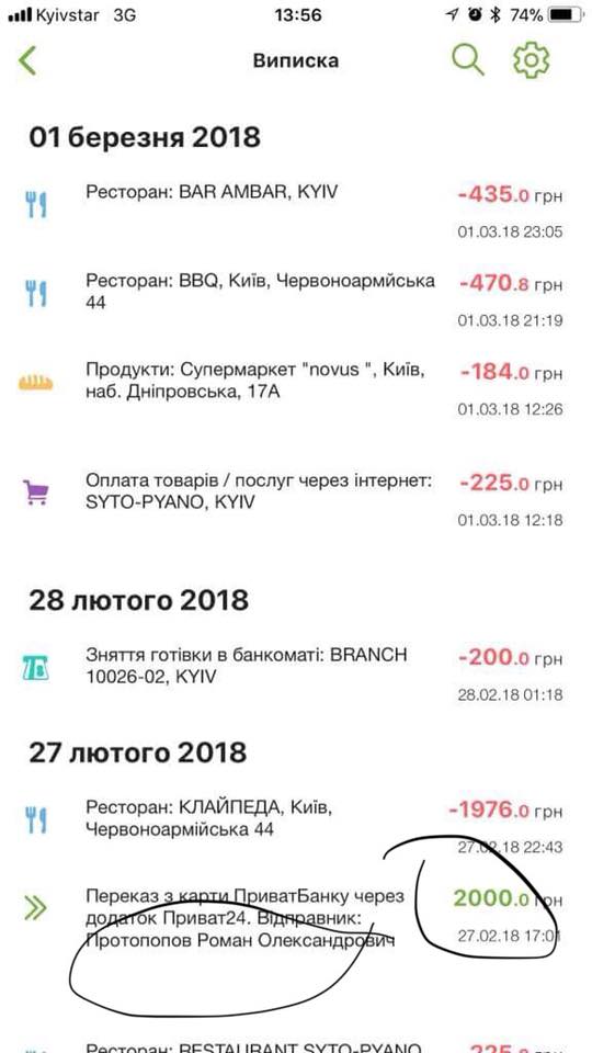 Ниже пара скринов. Про девочку Юлю. Про обсуждение Оли Сашей. Про то, как он просил помощи у других, чтоб понравиться украинцам. Выписка банка с его тратами и откатом за перепост о волонтёрах.