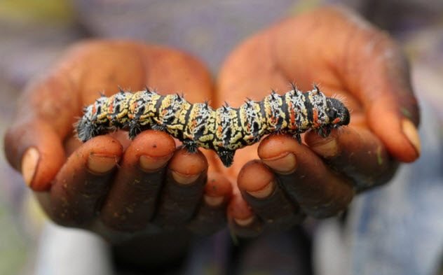 Говорят, что гусеницы Мопане по вкусу напоминают курицу. Попробуем. Ну, на самом деле, мы, скорее всего, не станем этого делать.