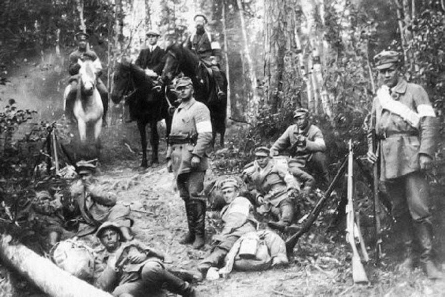 Для последующих событий огромное значение имел один фактор: ударной силой финской Белой гвардии стал егерский батальон немецкой службы. Это формирование создавалось немцами во время Первой мировой войны из финских националистов, и к 1917 году в нём насчитывалось почти 2 тысячи отлично подготовленных солдат и офицеров. Германия была заинтересована в том, чтобы через Финляндию проникнуть к Петрограду, и сделала ставку именно на финских белых. Поэтому егеря отправились на родину, причём в качестве дополнительного усиления немцы добавили хороший запас оружия. Вскоре они уже и сами вступили в войну на стороне белых. Русским удалось оперативно эвакуировать из Гельсингфорса (Хельсинки) основные силы флота, но в самом городе высадился немецкий десант, а финские белые быстро сломили сопротивление основных сил местных красных. Красная Финляндия была уже практически разгромлена. Однако события быстро начали выходить из-под контроля. Финны намеревались проводить границы в строгом соответствии с собственными представлениями о справедливости. Русским — ни красным, ни белым — в рамках этих планов места не было.